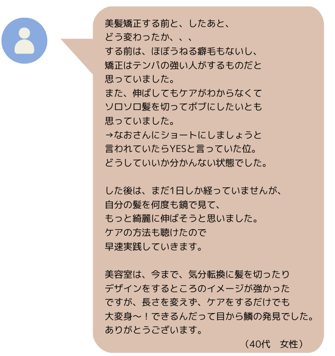 一生付き合っていく髪だからこそ大切に育ててもらえると嬉しいです。